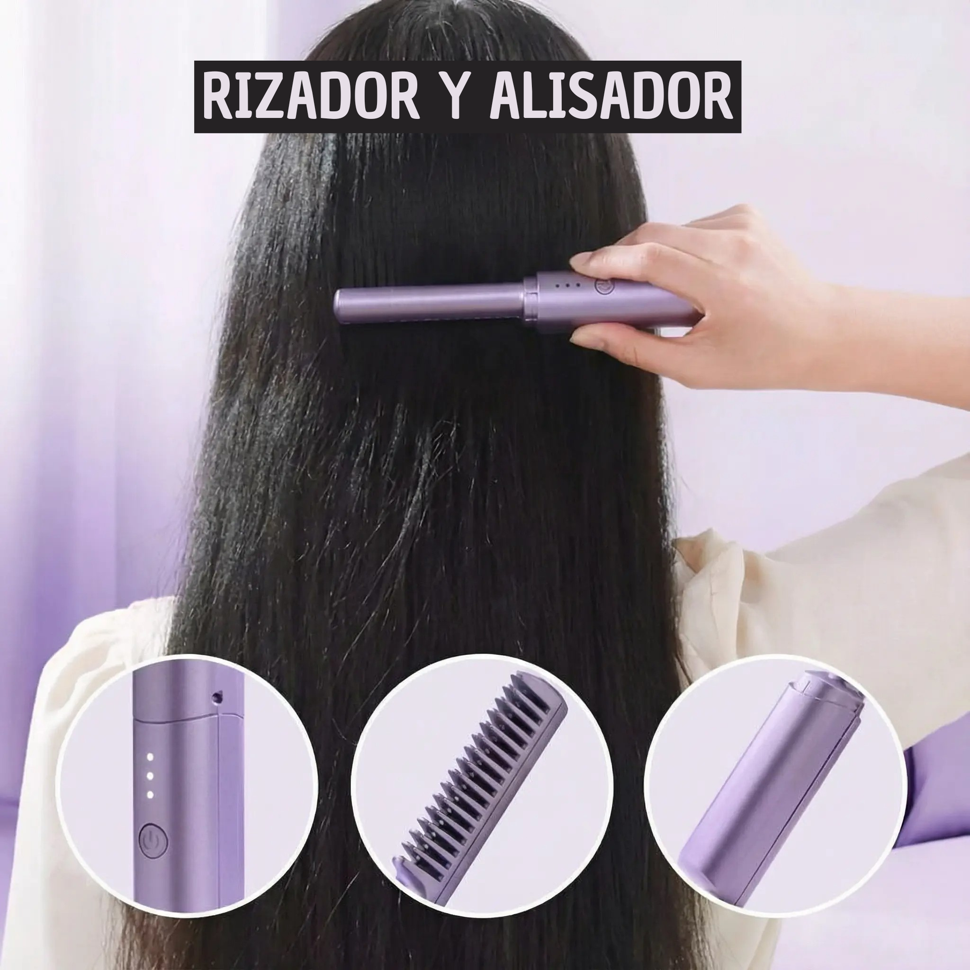 Cepillo alisador inalámbrico 2 en 1, rizador de pelo y Alisador, cepillo alisador portátil recargable por USB, cepillo alisador de pelo de larga duración de 70 minutos para viajes en casa para mujeres